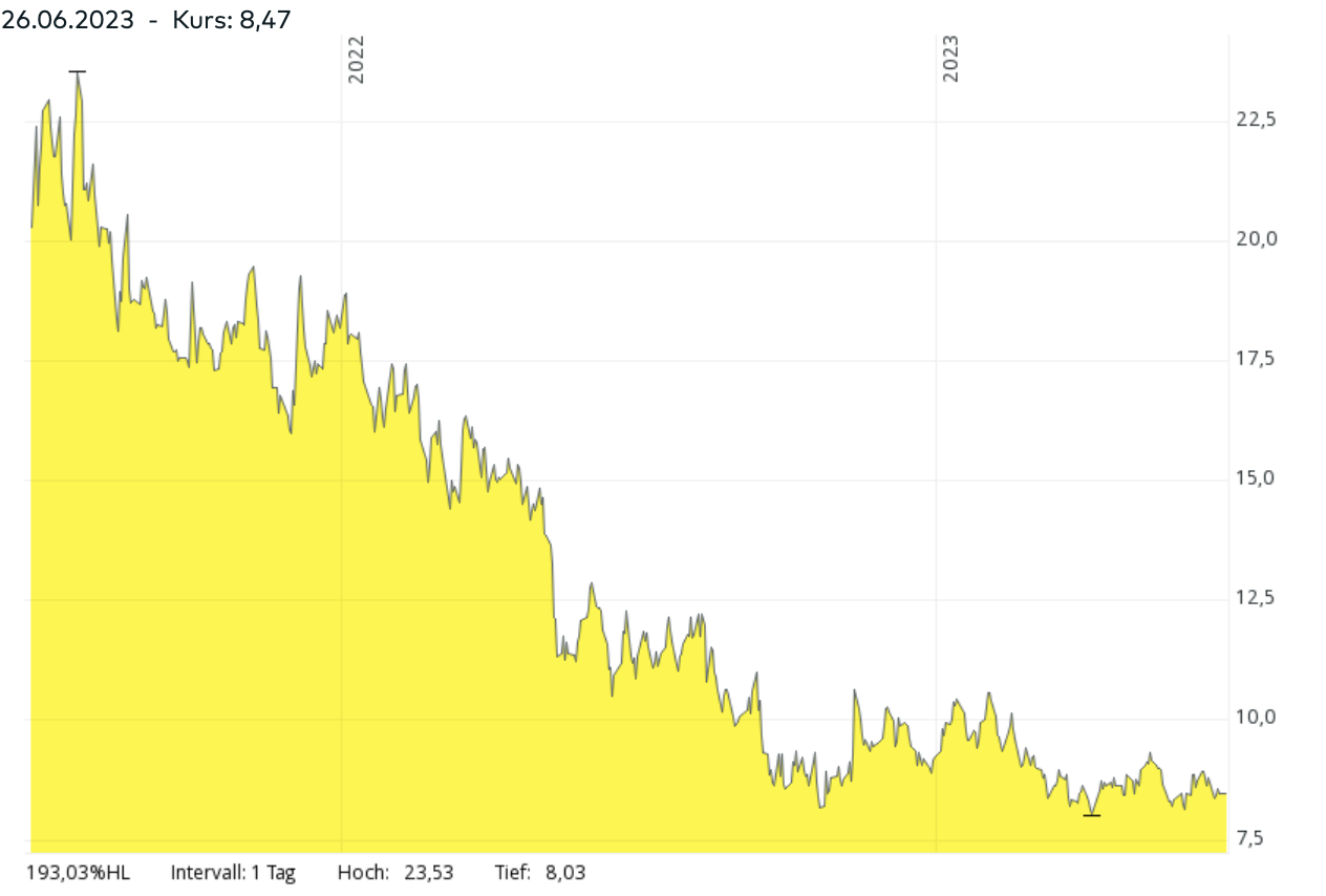 Damit hat sich der Kurs seit Beginn unserer Beobachtung fast halbiert. Doch worauf ist der starke Kursrückgang zurückzuführen?